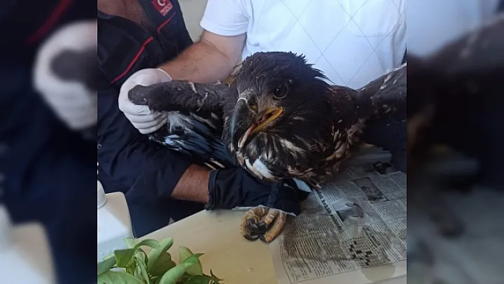 Malatya'da, yaralı kartal kurtarılarak ilçe merkezinde bulunan veteriner hekim tarafından tedavi edildi.
