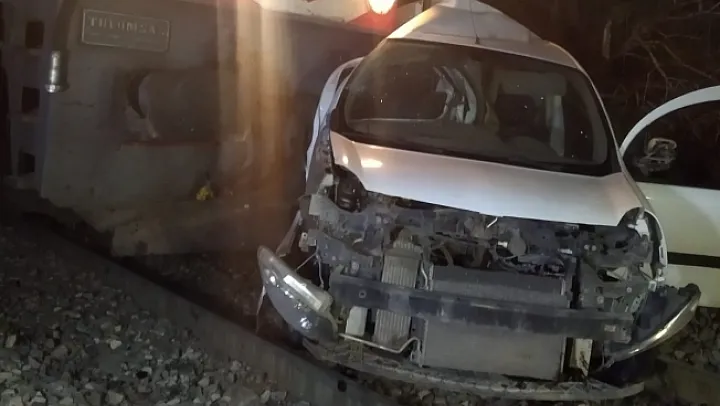 Yük treni hemzemin geçitte araçla çarpıştı: 1 yaralı