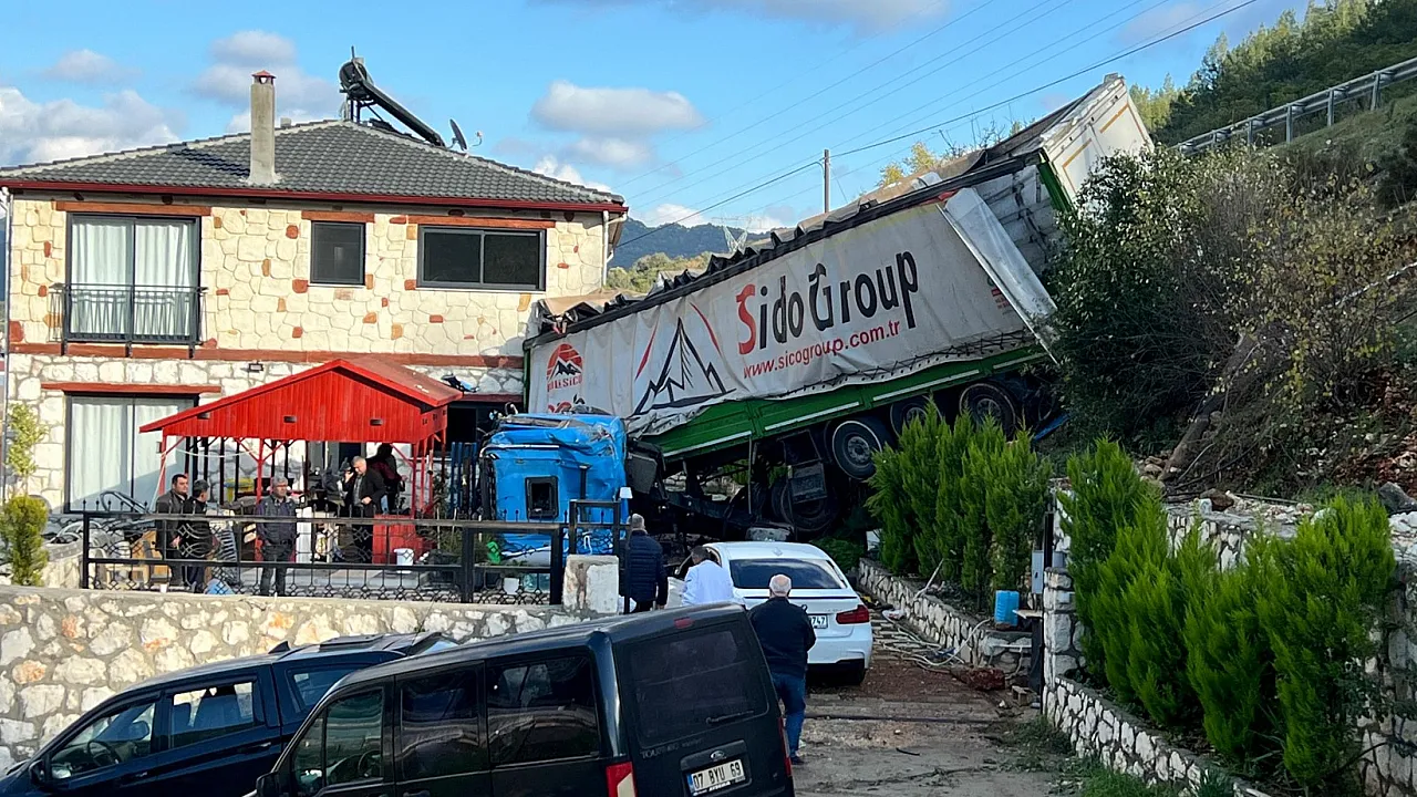 Antalya'nın Demre ilçesinde tır kazası: Ev duvarına çarparak durabildi