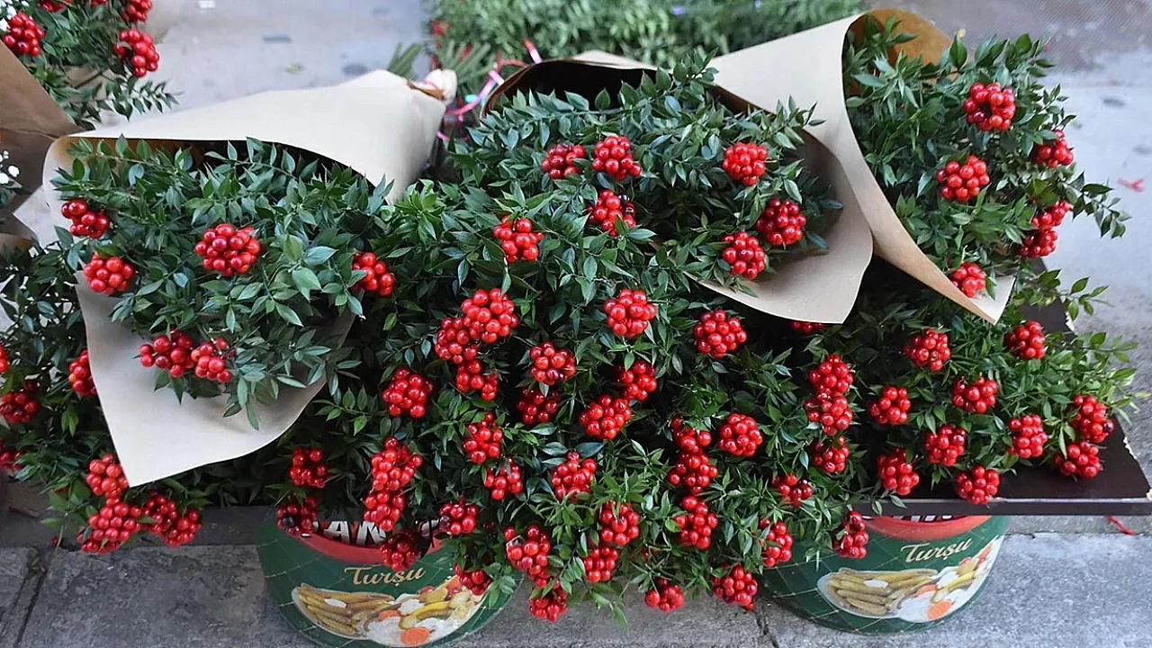 Aralık ayının en gözde çiçeklerinden biri olarak kabul edilen kokina, hem yeni yıl heyecanını yansıtan görüntüsü hem de taşıdığı anlamlarla bu yıl da vitrinlerin yıldızı olmayı başarıyor.