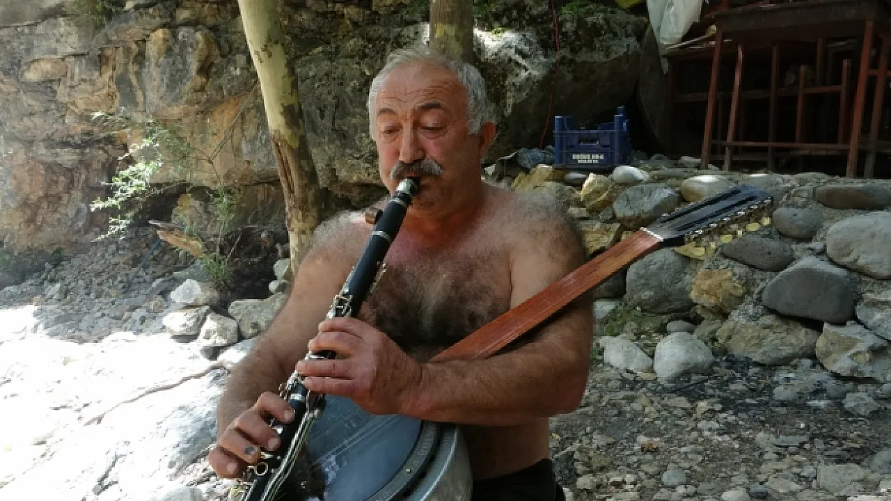 Malatya'da 23 yıldır sadece üzerindeki şortla kanyonda yaşayan ve halk arasında 'Arapgirli Tarzan' olarak adlandırılan Ümit Aydın, bir elinde klarneti diğerinde cümbüşüyle türkü söyleyip ziyaretçilerine eğlenceli dakikalar yaşatıyor.