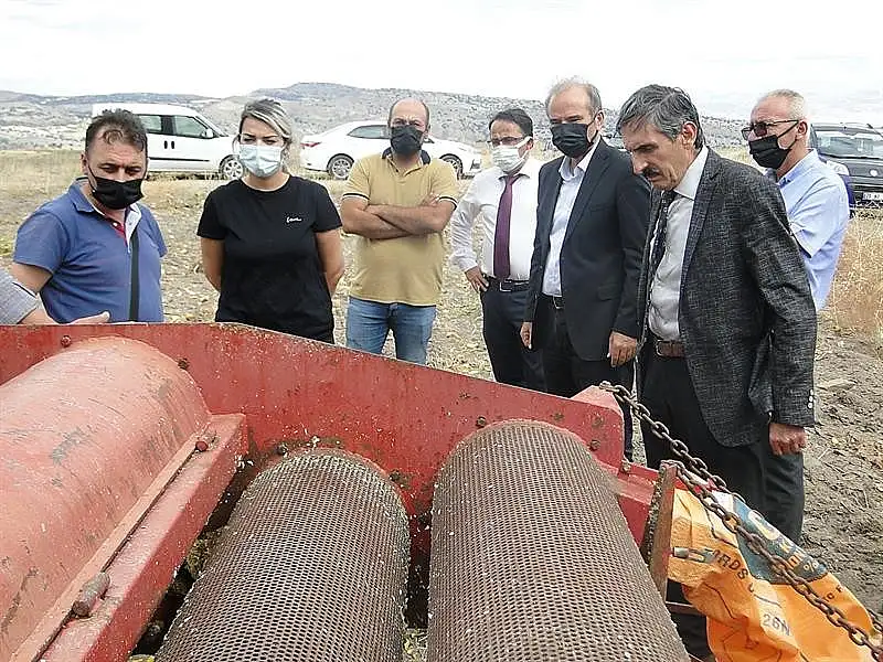 Tarım ve Orman İl Müdürlüğü tarafından hazırlanan "Nadas Alanlarında Çerezlik Kabak Yetiştiriciliği Projesi" kapsamında ekilen kabakların hasadı için yetkililer ve üreticiler tarlada bir araya geldi.