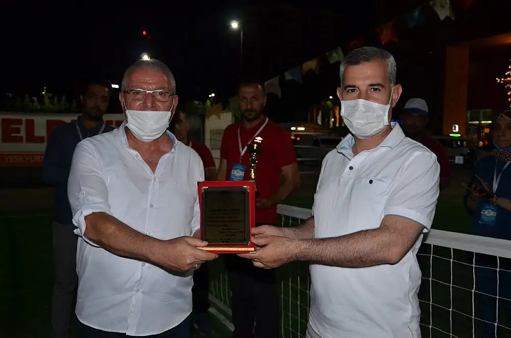 Yeşilyurt Belediye Başkanı Mehmet Çınar, turnuvaya desteklerinden dolayı ASKF Başkanı Seyfullah Özdemir’e teşekkür plâketi verdi.