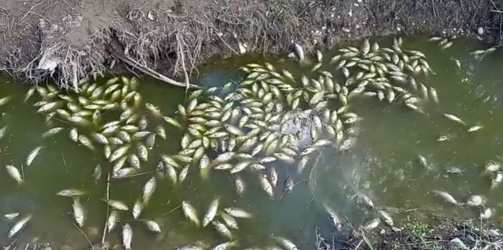 Baraj Kapakları Açılınca Çaydaki su seviyesi yükseldi, seviye yükselince kapatılan kapaklar nedeniyle sular çekildi ve binlerce balık telef oldu…