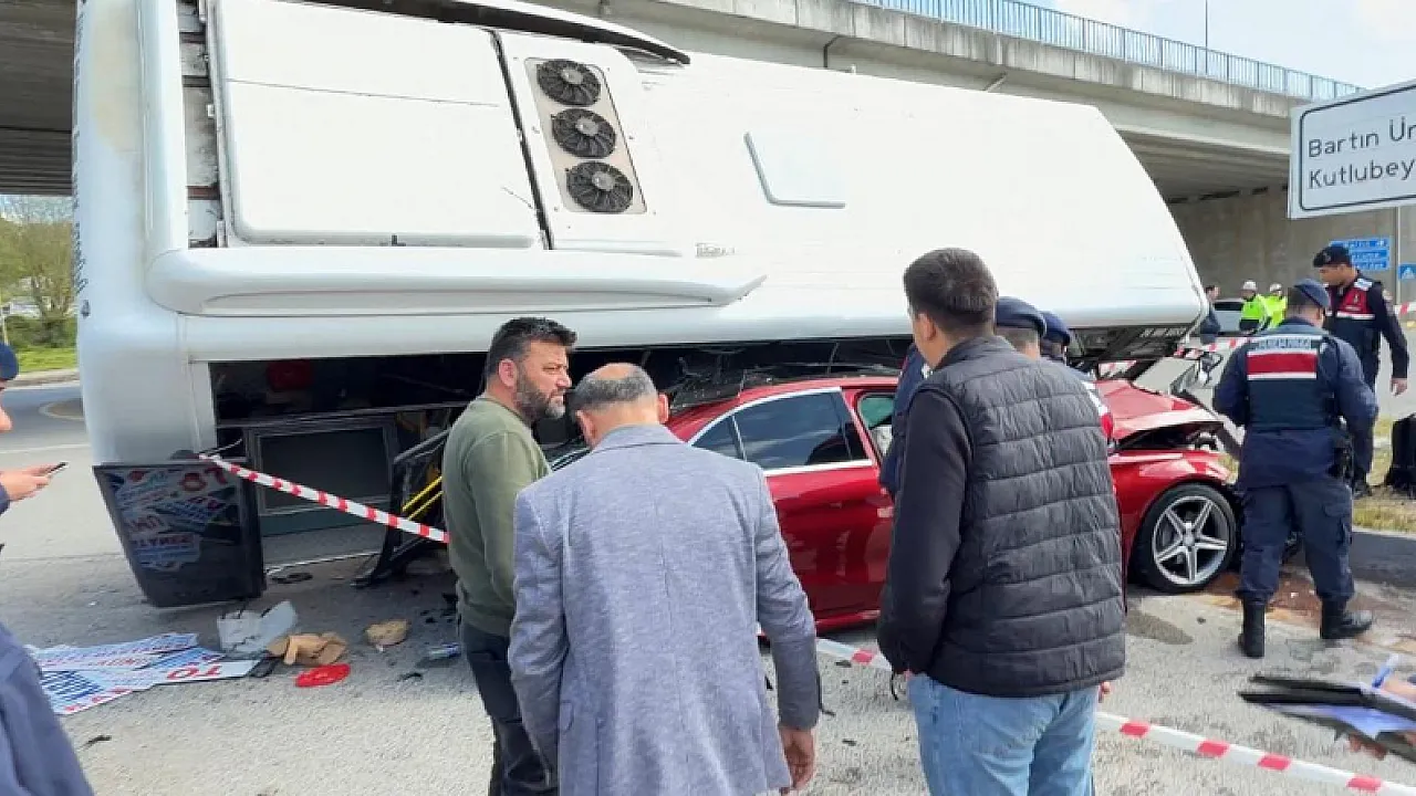 Bartın'da üniversite öğrencilerini taşıyan özel halk otobüsünün bir otomobille çarpışması sonucu meydana gelen kazada can pazarı yaşandı. Kontrolden çıkan otobüsün otomobilin üzerine devrildiği olayda, çok sayıda öğrenci yaralandı.