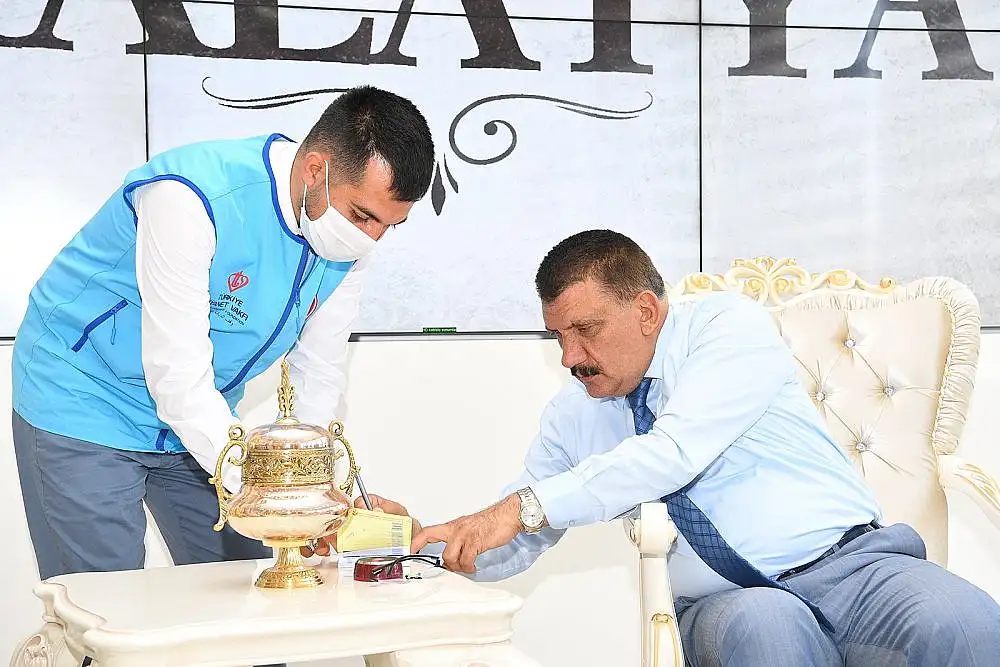 Daha sonra İl Müftüsü Işıldar, Başkan Gürkan’a Diyanet Vakfı görevlisinin hazırladığı Kurban Bağış makbuzunu takdim etti.