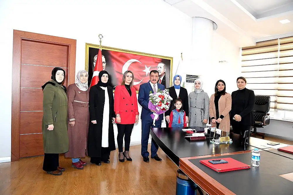 Öğretmenler Günü nedeniyle çeşitli ziyaretlerde bulunan AK Parti Kadın Kolları Başkanı Özlem Pelitoğlu ve Yönetim Kurulu Üyeleri Büyükşehir Belediye Başkanı Selahattin Gürkan’ı makamında ziyaret ederek bir süre görüştüler.