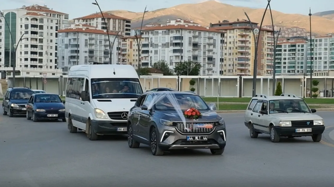 Türkiye'nin yerli ve milli otomobili, Türkiye'nin Otomobili Girişim Grubu (TOGG) aracı, Malatya’da gelin arabası oldu.