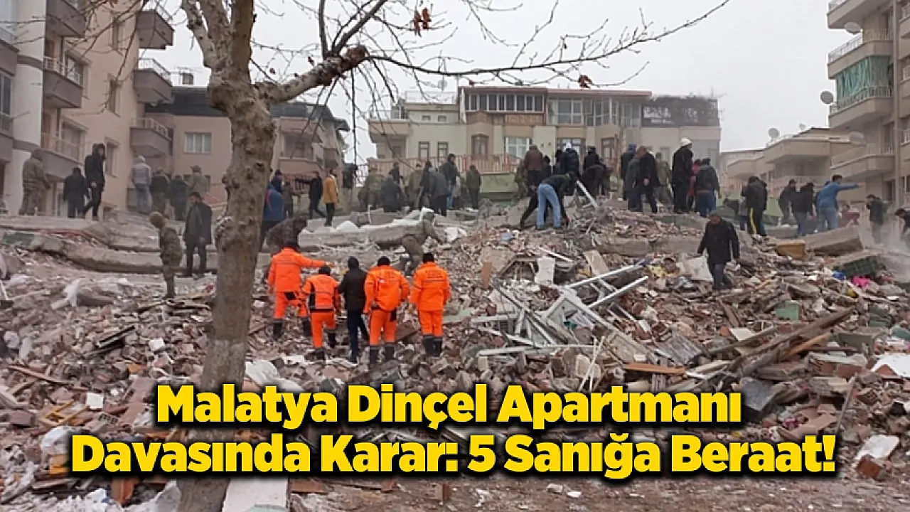 Malatya'da 6 Şubat depremlerinin vurduğu binalardan biri olan Dinçel Apartmanı davasında yargı süreci yeni bir aşamaya taşındı. Battalgazi ilçesi İsmetiye Mahallesi'nde bulunan ve ikinci depremde yerle bir olan binada 98 yaşındaki H.A.'nın hayatını kaybetmesiyle ilgili yürütülen soruşturmada, beş sanık hakkında beraat kararı çıktı.