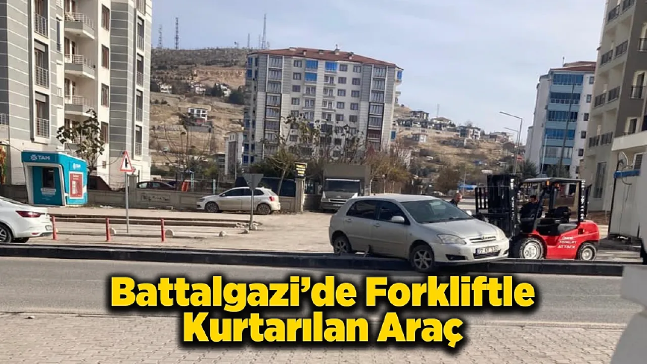 Battalgazi'de Orta Refüje Çıkan Aracı Forklift Kurtardı
