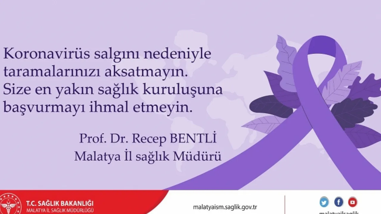 Malatya İl Sağlık Müdürü Prof. Dr. Recep Bentli yaptığı açıklamada, kanserde erken teşhisin önemli olduğuna dikkat çekerek, erken tanı için vatandaşları taramaya davet etti.