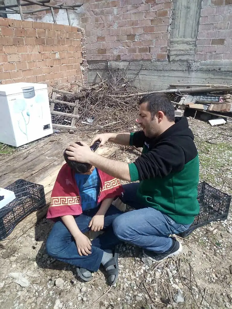 Malatya’da basın mensubu olan Mehmet Yalman, merkez ilçe Yeşilyurt Dilek Mahallesindeki bahçeli evlerinde, oğlunun tıraşını kendisi yaptı.