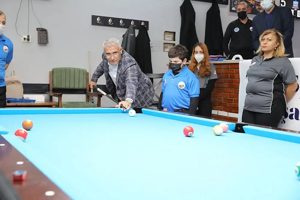 Bilardo şampiyonasının açılışını Başkan Güder gerçekleştirdi