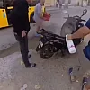 Motosikletin alev aldığı anlar ve vatandaşın müdahalesi çevredeki bir işletmenin güvenlik kamerasına yansıdı. Görüntülerde motosikletin bir anda alev aldığı, ardından çevredekilerin panikle sağa sola koşuşturduğu net bir şekilde görülüyor.