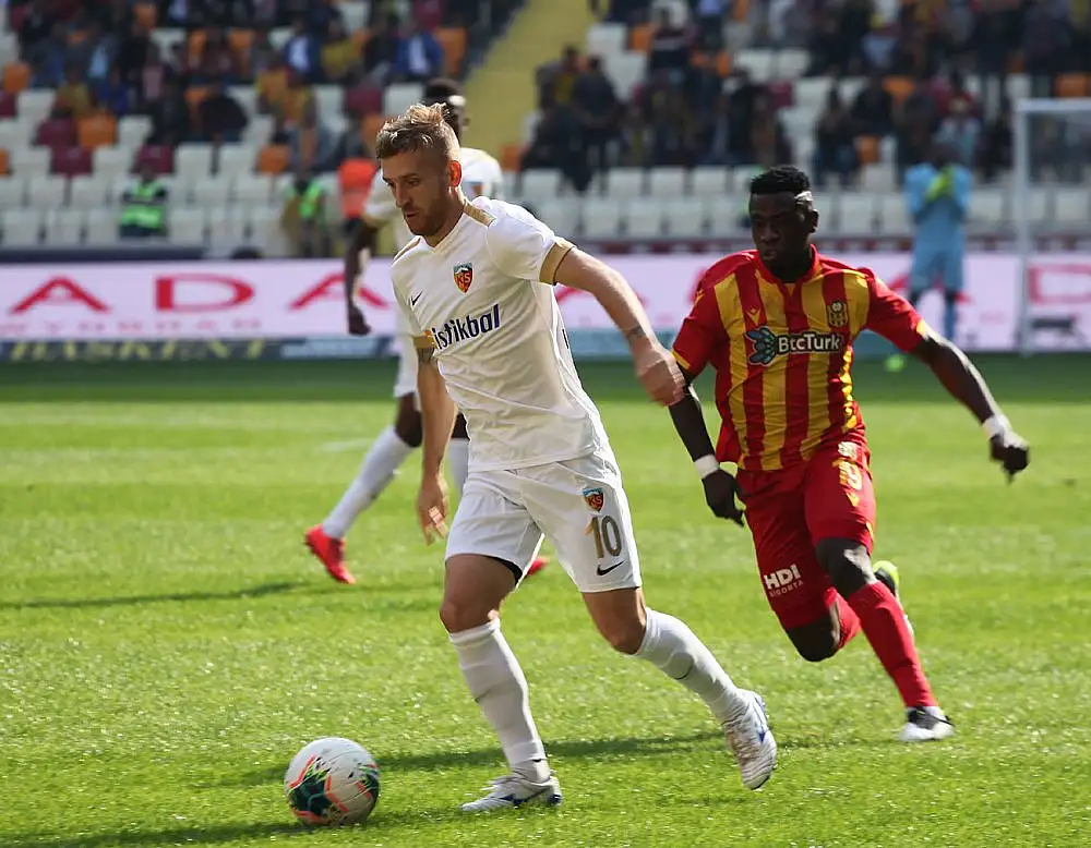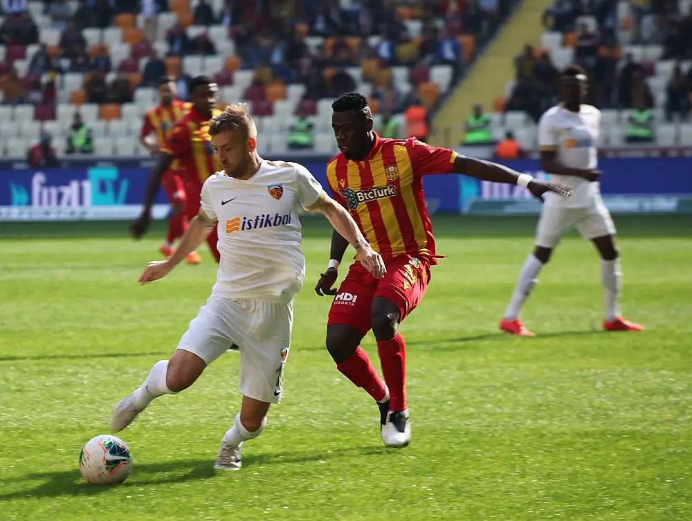 Dakika 42: Kayseri savunmasının hatasıyla topu Fofana kaptı. Bu futbolcunun ortaladığı topa cezasahasında dokunan olmadı.