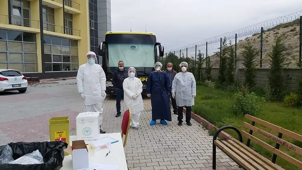 Süper Lig'e 12 Haziran'da yeniden başlanacağının açıklanmasının ardından 11 Mayıs Pazartesi günü top başı yapacağını duyuran Yeni Malatyaspor'da futbolcu, antrenör ve kulüp çalışanlarına korona virüs testi yapıldı.