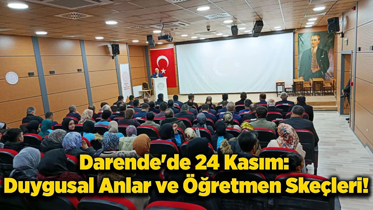 Malatya'nın Darende ilçesinde 24 Kasım Öğretmenler Günü, İlçe Millî Eğitim Müdürlüğü Konferans Salonu'nda düzenlenen coşkulu bir törenle kutlandı. Duygusallığın ve saygının öne çıktığı anların yanı sıra, öğretmenlerin ve öğrencilerin hazırladığı 'Bizim Sınıf' adlı skeç gösterisi, mizahi içeriğiyle katılımcılardan büyük beğeni ve kahkaha aldı.