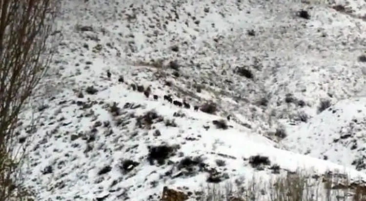 Daren'nin Beybağı Mahallesi dağlık kısmında yaşayan yaban domuzları, kar nedeniyle yiyecek bulamayınca sürüler halinde yerleşim yerlerine indi. Bölgede yiyecek arayan domuzlar, bir vatandaş tarafından cep telefonuyla görüntüledi.