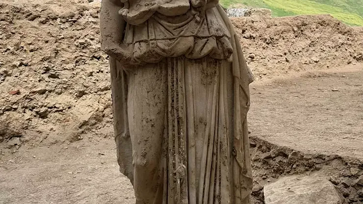 Kazı ekiplerinin sahne binasının dış duvarında yürüttüğü çalışmalar sırasında tespit edilen heykelin, yaklaşık 2 metre uzunluğunda olduğu bildirildi. Baş kısmı henüz bulunamayan eserin, beyaz mermer üzerindeki ince işçiliği uzmanları hayran bıraktı. Antik kentin sanatsal gücünü yansıtan heykelin, özellikle Augustus Dönemi’nin (MÖ 27 – MS 14) klasik üslubunu taşıdığı ve usta bir heykeltıraşın elinden çıktığı değerlendiriliyor.
