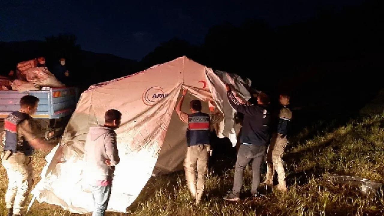 Doğu Anadolu fay hattının geçtiği Pütürge’de meydana gelen depremin hemen ardından, evleri ağır hasar gören vatandaşların barınma amaçlı çadırları Jandarma personeli tarafından kuruldu.