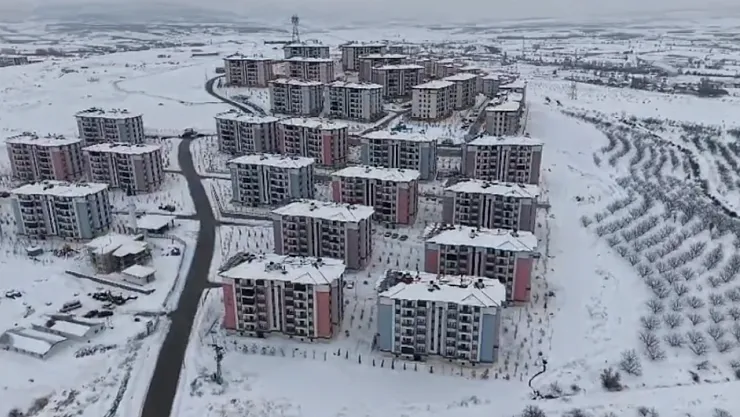 Kar yağışının ardından ortaya çıkan masalsı görüntü, sadece yer seviyesinden değil, gökyüzünden de kaydedildi. Dron ile çekilen görüntülerde, ilçenin bütünüyle beyaz bir örtü altında kaldığı ve doğanın kış mevsimiyle olan uyumu net bir şekilde görüldü. Özellikle yüksek kesimlerde yoğunlaşan kar tabakası, bölgedeki mimari ve doğal yapıyla birleşerek etkileyici kareler oluşturdu.