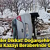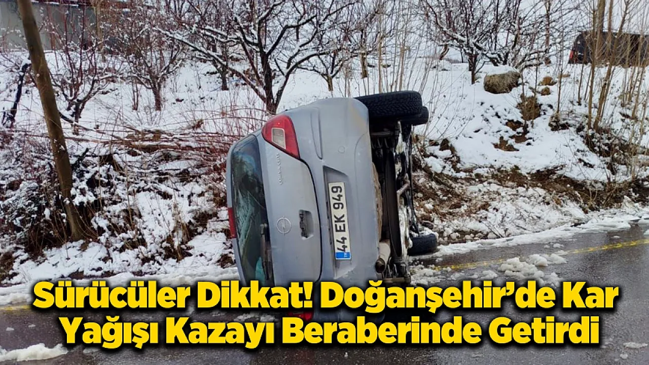 Malatya'nın Doğanşehir ilçesinde etkili olan kar yağışı ve beraberinde getirdiği buzlanma, trafik kazasına yol açtı. İlçeye bağlı Gövdeli Mahallesi mevkisinde seyir halinde olan bir otomobil, kayganlaşan zeminde sürücüsünün direksiyon hakimiyetini kaybetmesi sonucu devrildi.
