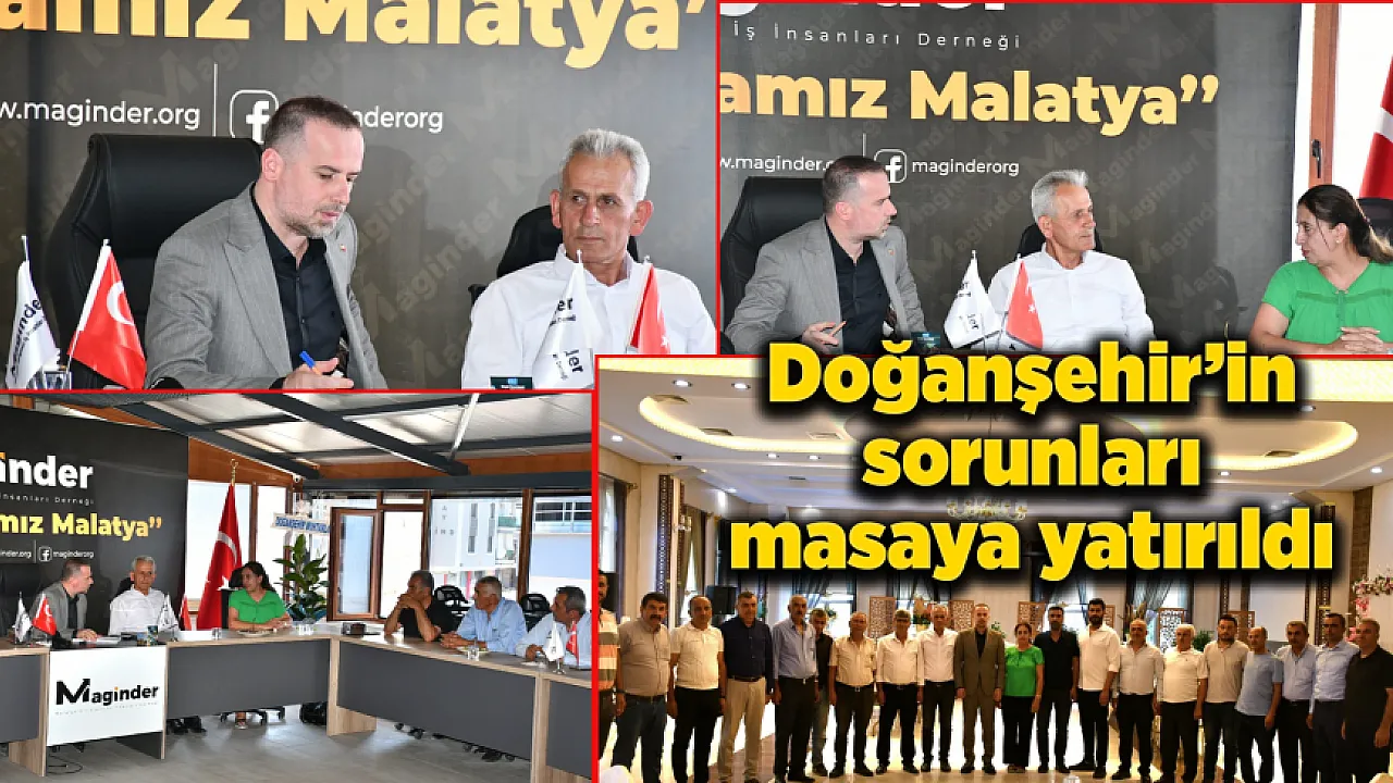 Doğanşehir Muhtarlar Derneği Başkanı Mustafa Sema öncülüğünde bir araya gelen muhtar heyeti, Malatya Girişimci İş İnsanları Derneği (MAGİNDER) Başkanı Salih Karademir'e dernek binasında nezaket ziyaretinde bulundu. Ziyarette ilçenin deprem sonrası durumu, yaşanan sorunlar ve çözüm önerileri kapsamlı şekilde masaya yatırıldı.