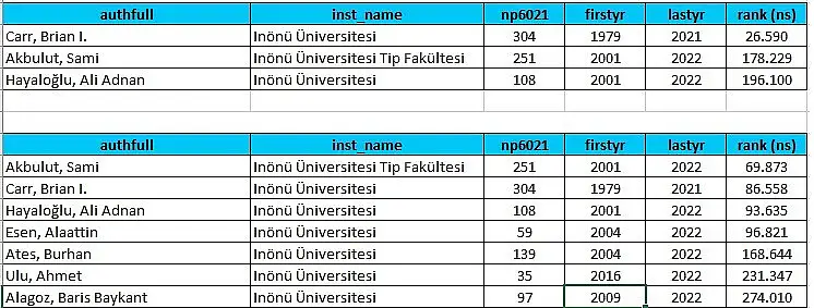 2021 yılına göre, ilk yüzde 2’lik dilimde bulunan "Dünyanın En Etkili Bilim İnsanları" listesi, "Kariyer boyu etki" ve "Yıllık etki 2021 yılı çalışmalar" olarak iki kategoride listelendi. 190 bini aşkın bilim insanının değerlendirmeye alındığı çalışmalarda nitelikli yayın sayısı, yayınların yer aldığı derginin etkisi, patent sayısı, yapılan atıf sayısı, h-indeks, hm-indeks, makale sayısı ve atıf alan makale sayısı gibi kriterlerin ele alındığı bu listelerde, İnönü Üniversitesi’nden 7 akademisyen yer aldı.