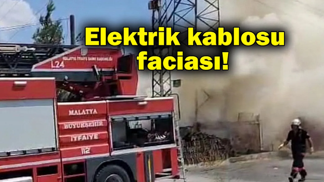 Malatya'nın Battalgazi ilçesinde elektrik direğinden kopan kablo, bir odunluğun üzerine düşerek yangına neden oldu.