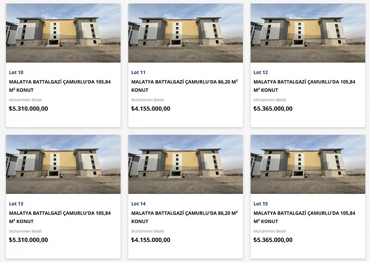 Emlak Yönetim resmi internet sayfası üzerinden Malatya'da 59 adet konutun satılacağını duyurdu. Malatya'nın Battalgazi ilçesinde bulunan Memur-sen TOKİ konutlarının hemen üzerinde 3+1 ve 2+1 olarak inşaa edilen evler satışa çıkarıldı.