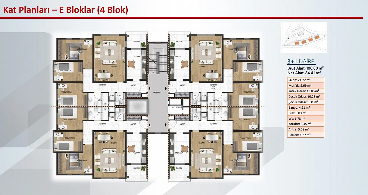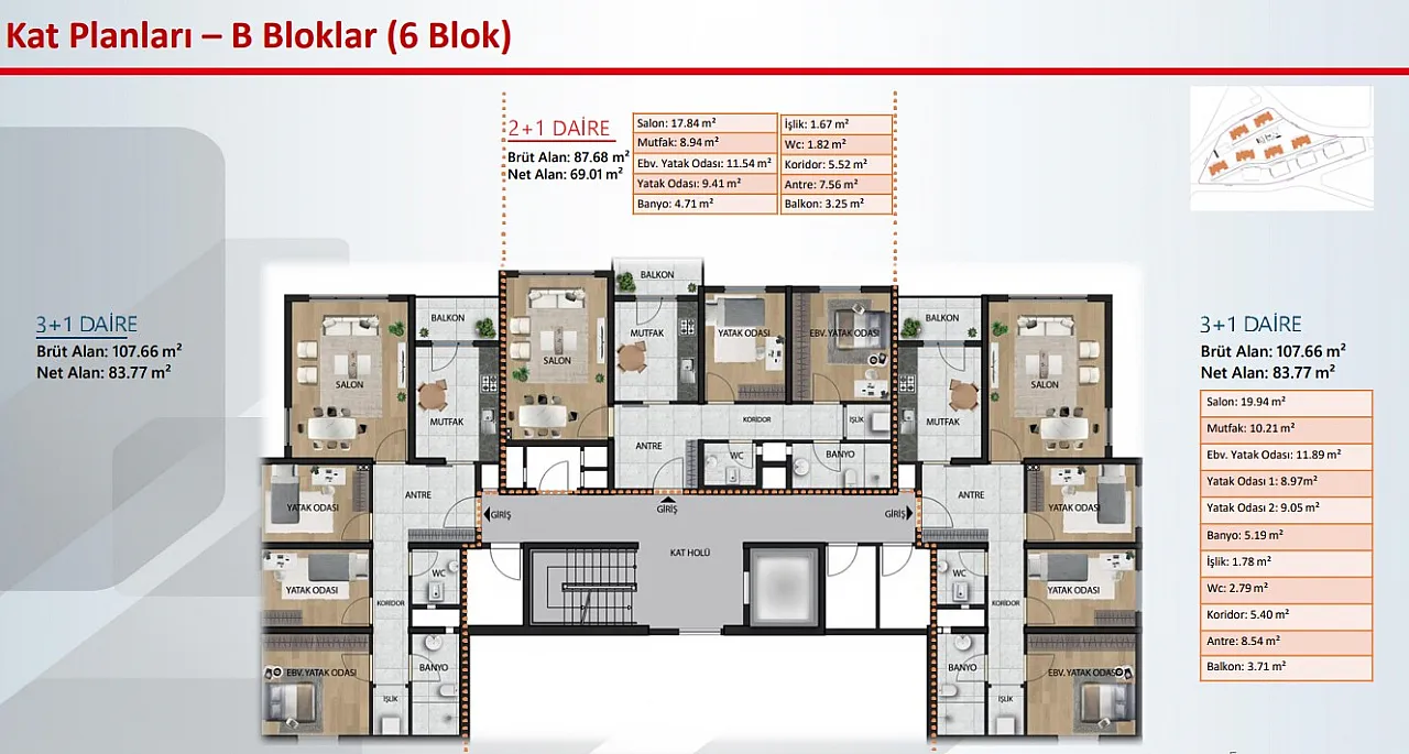 2+1 ve 3+1 olmak üzere 10 blokluk 204 konutun yapılması kararlaştırıldı. B ve E tipi bloklar oluşturuldu. 2+1 40 konut, 3+1 164 konut planlandı. 2+1 daireler ortlama 87 metrekare brüt, 69 metrekare net, 3+1 dairelerde 105 metrekare brüt, 85 metrekare net olarak belirlendi. TOKİ ile irtibata geçildi, ihalesi yapıldı ve evler üretilmeye başlandı. Bu süreçte banka çalışanlarından talepler alındı.