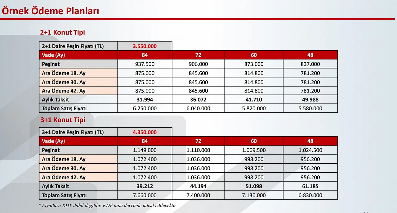 Ancak ödeme planının altındaki not şok edici. Fiyatlara birde yüzde 20 KDV ekleyince rakam dahada artıyor.