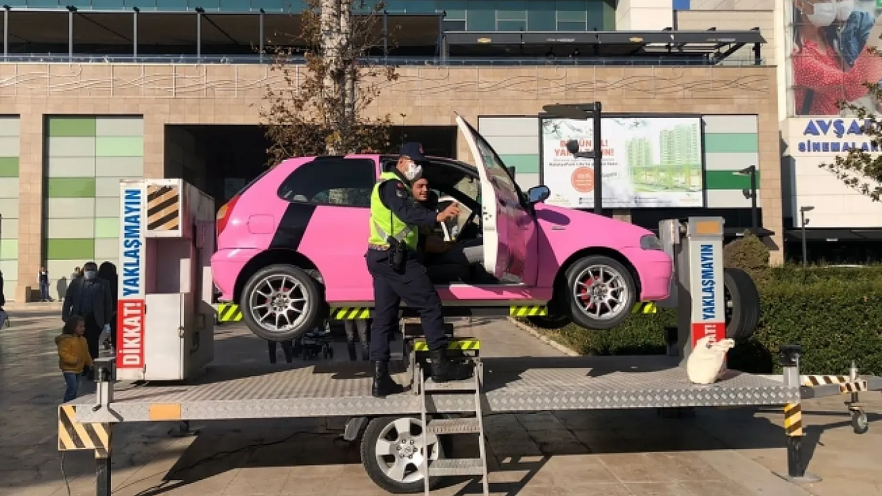 İçişleri Bakanlığı tarafından trafik güvenliğinin en üst noktaya taşınması ve kamuoyu farkındalığının oluşturulabilmesi amacıyla 'Bi Hareketine Bakar Hayat' ana temalı kampanya kapsamında Malatya'da düzenlenen etkinlikte, emniyet kemerinin önemi simülasyon aracı ile uygulamalı olarak gösterildi.
