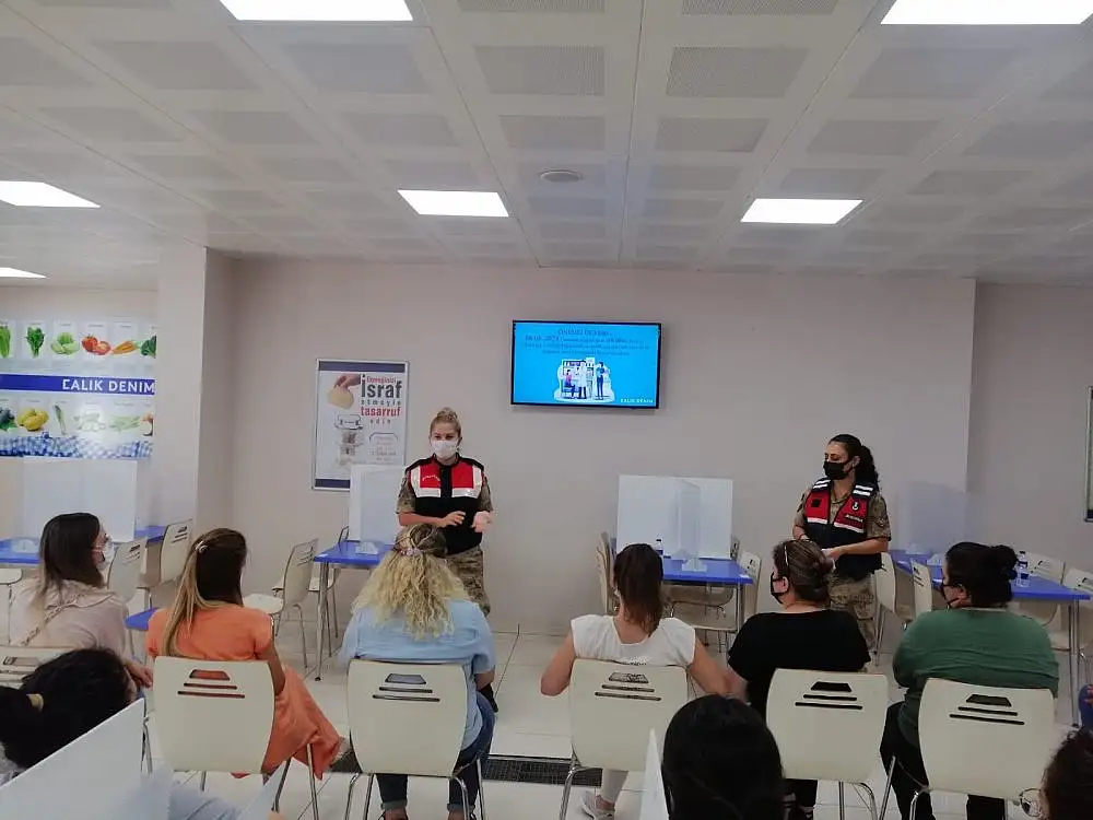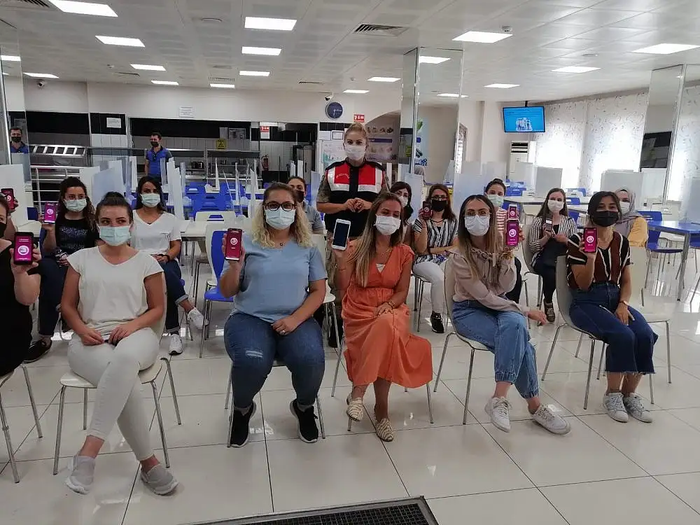 Jandarma Komutanlığı görevlilerince, kadınların ve çocukların maruz kaldığı şiddet, taciz gibi kötü eylemleri birazda olsun engellemek adına kullanıcılara sunulmuş resmi bir uygulama olan KADES programının akıllı telefon kullanıcısının yüklenilmesi çalışmaları tekstil fabrikalarında çalışan kadınlara gösterildi.