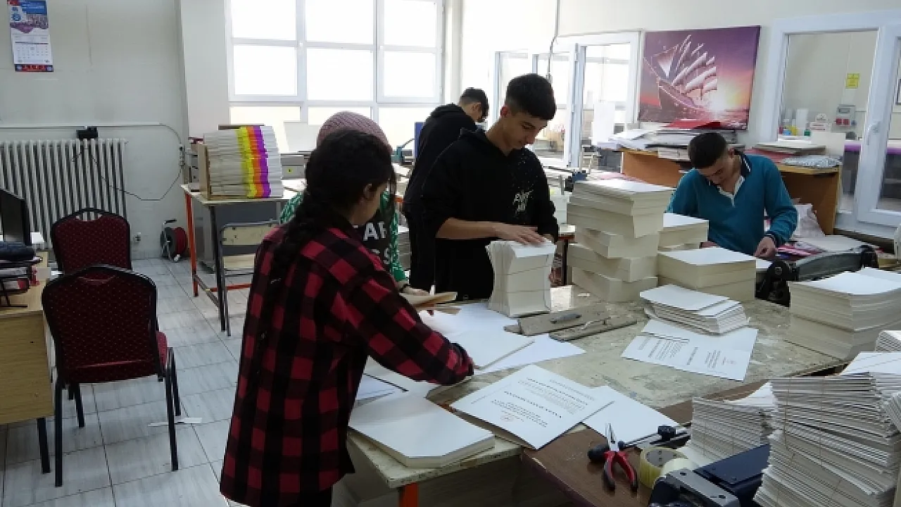 Yeşilyurt ilçesi Çarmuzu Mahallesi’ndeki Yunus Emre Mesleki ve Teknik Anadolu Lisesi Matbaa Bölümü öğrencileri, kentteki kamu kurumlarının ihtiyacı olan çeşitli malzemeleri üreterek hem eğitim görüyor hem para kazanıyor.