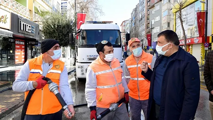 Malatya Büyükşehir Belediyesi ekipleri, hafta sonları sokağa çıkma kısıtlamasının olduğu günlerde cadde ve sokakları köpüklü su ve solüsyonla dezenfekte ediyor. Malatya cadde ve sokaklarında yapılan temizlik çalışmalarını inceleyen ve denetleyen Büyükşehir Belediye Başkanı Selahattin Gürkan, temizlik personelleriyle birlikte cadde ve sokak yıkaması yaptı.