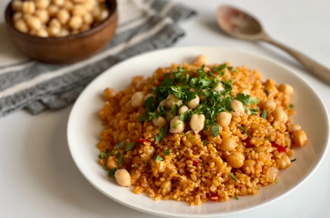 Anadolu sofralarının en samimi ve doyurucu klasiklerinden biri olan nohutlu bulgur pilavı, buram buram gelenek kokan aromasıyla akşam yemeklerinin vazgeçilmezi. Bulgurun doğallığını nohutun yüksek besleyiciliğiyle birleştiren bu tarif, hem ekonomik hem de tam bir enerji deposu.