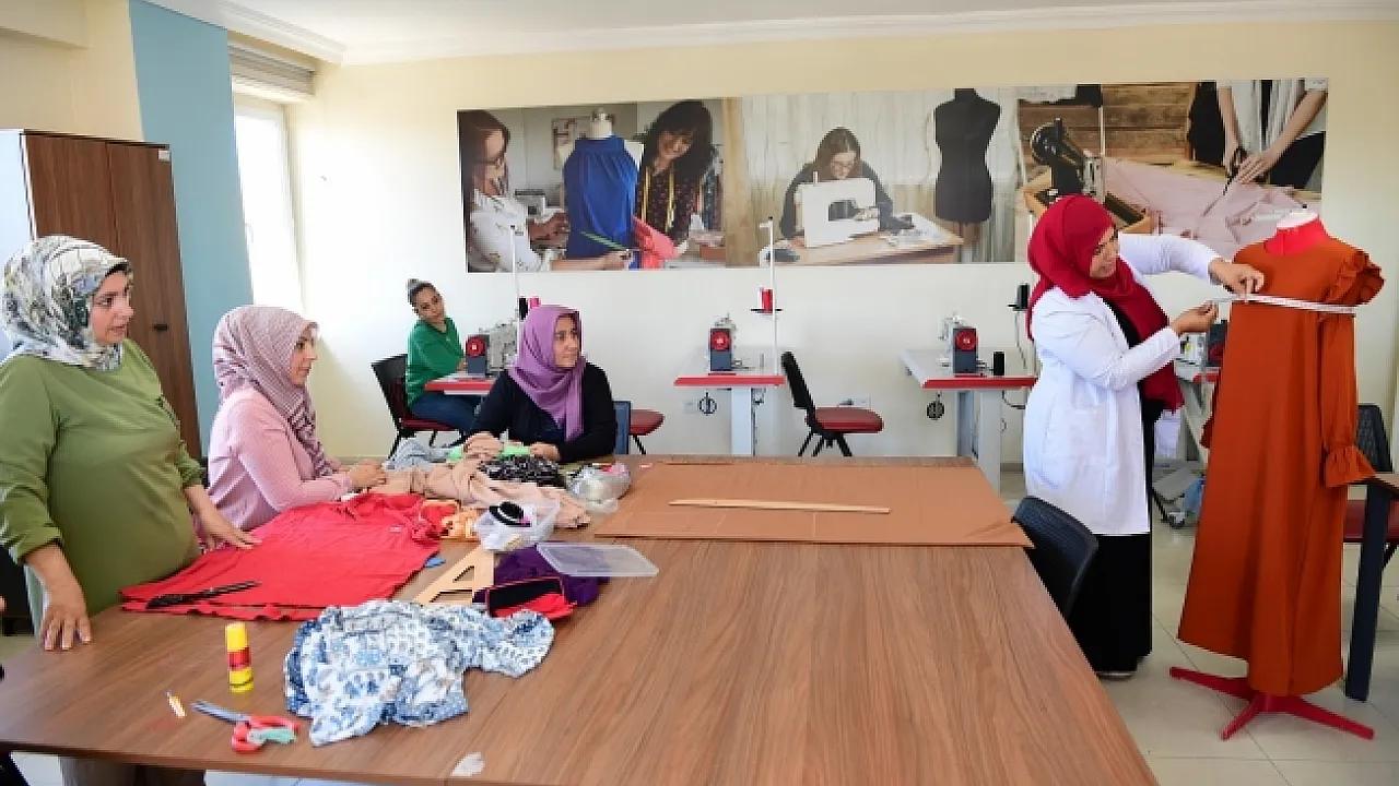 Kiltepe mahallesinde hizmet veren Yeşilyurt Mesleki Eğitim ve Yaşam Merkezi’nde açılan kurslar arasında yerini alan Hazır Giyim Kursuna katılan kursiyerlere düz dikiş, overlok, reçme, ilik-düğme, ponteriz, zigzag, ütüleme, kesim, tekstil yüzeyleri, kalıplar, malzeme kontrolü ve çeşitli dikim yöntemleri alanlarında eğitimler veriliyor. Alanında uzman isimler tarafından verilen eğitimleri dikkatlice takip eden kadın kursiyerler nitelikli bir meslek ve iş sahibi olma yolunda önemli bir aşamayı geride bıraktılar.