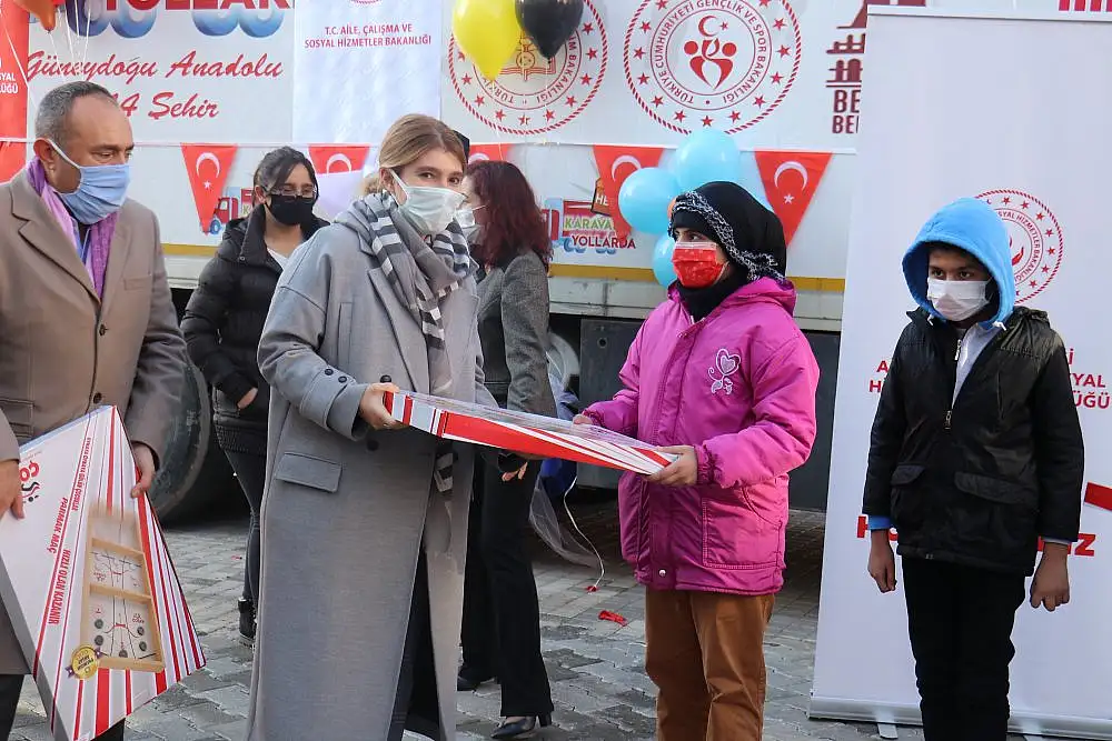 Aile, Çalışma ve Sosyal Hizmetler Bakanlığı ile Çocuk Oyunları ve Spor Kulüpleri Federasyonu iş birliğiyle hazırlanan 'Hediye Karavanı' tırı Doğu Anadolu'daki ilk durağı Malatya'ya geldi. İçerisinde parmak taş, dokuztaş ve mangala gibi geleneksel oyun setlerinin bulunduğu hediye paketleri Malatya'da 500'ün üzerinde çocuğa verilecek.