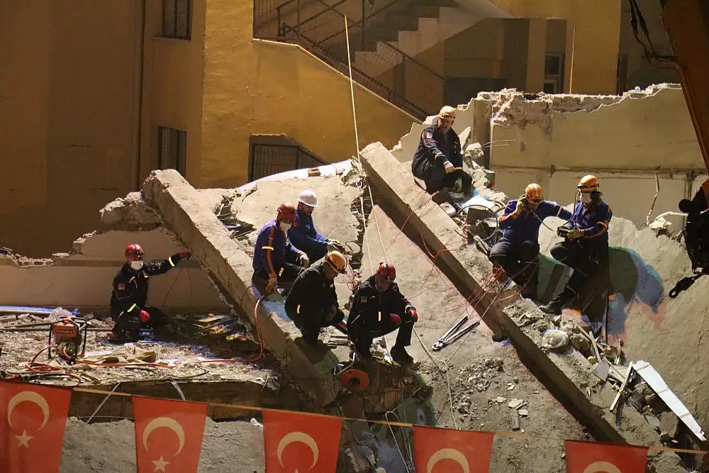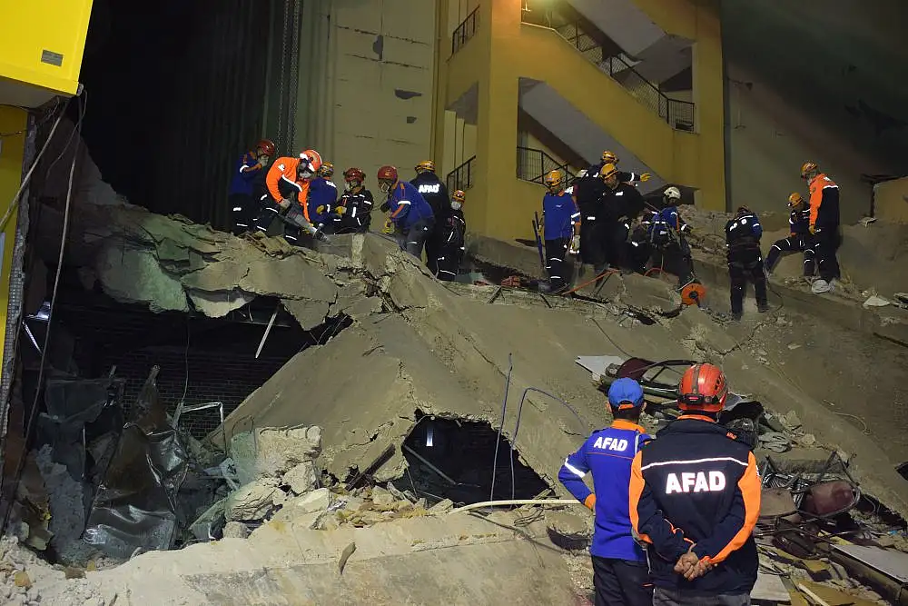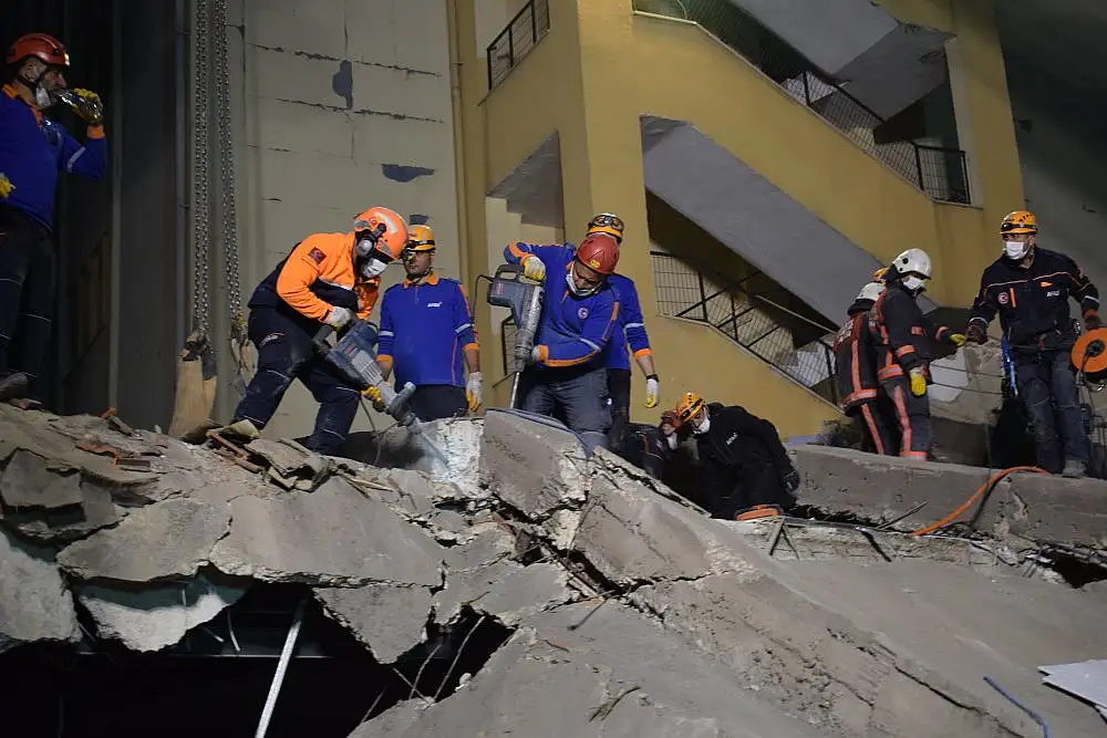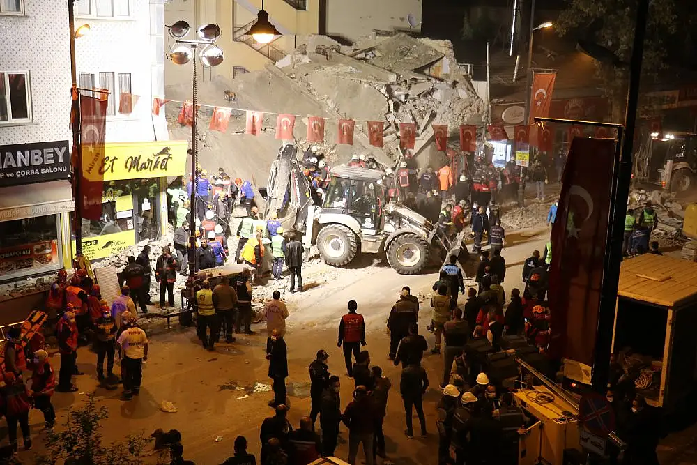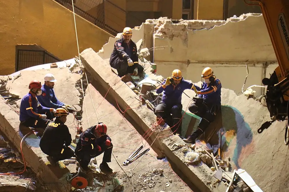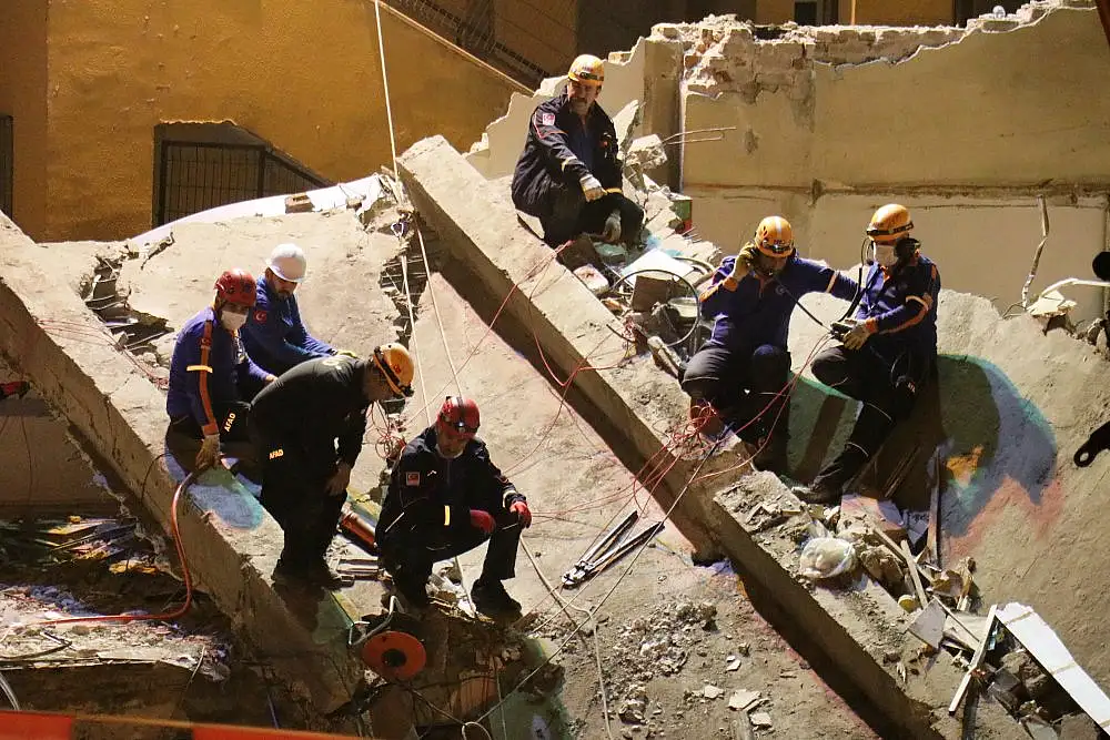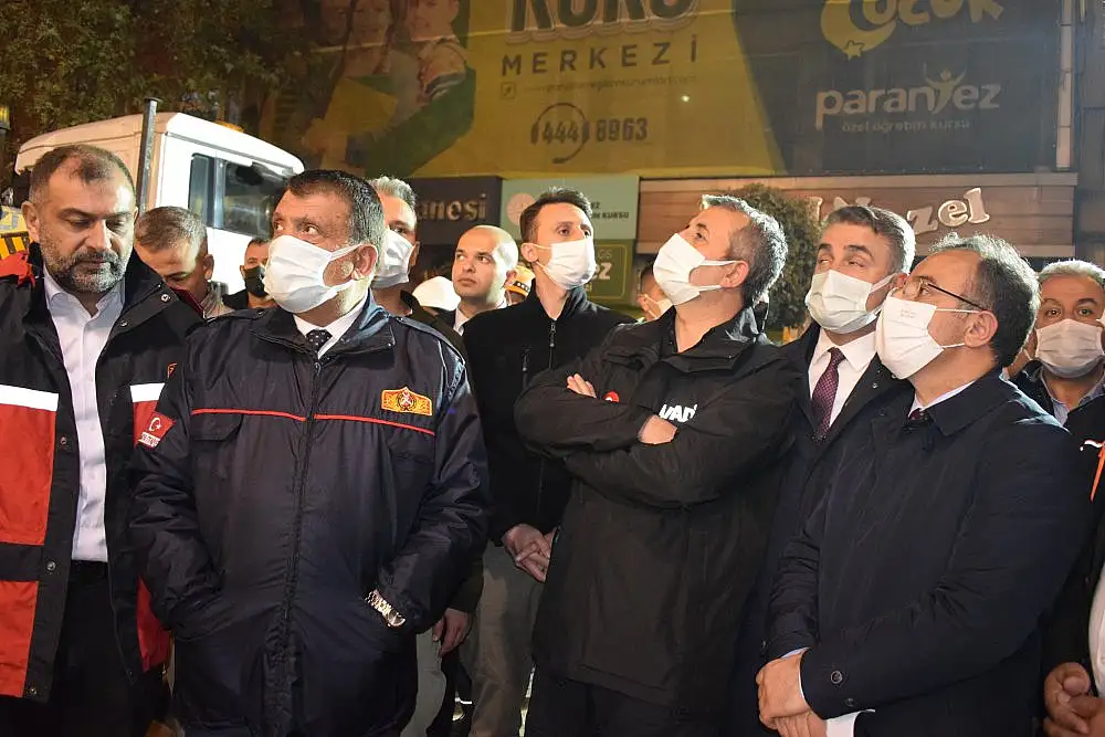 İçişleri Bakan Yardımcısı İsmail Çataklı, çöken binanın enkazında incelemelerde bulundu