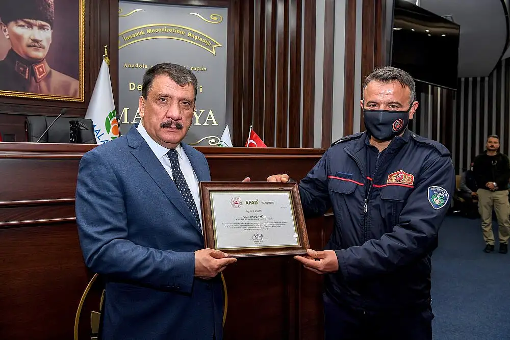 Yaz aylarında özellikle Akdeniz bölgesinde meydana gelen yangın afetinde söndürme ve enkaz kaldırma çalışmalarıyla birlikte, Batı Karadeniz bölgesinde meydana sel afetinde de arama kurtarma ve enkaz kaldırma çalışmalarına katılan Malatya Büyükşehir Belediyesinde görevli personele İçişleri Bakanlığı tarafından teşekkür belgesi verildi. İçişleri Bakanı Süleyman Soylu tarafından bölgelerde yapılan çalışmalara verilen desteklerden dolayı Malatya Büyükşehir Belediye Başkanı Selahattin Gürkan’a da teşekkür belgesi verildi.