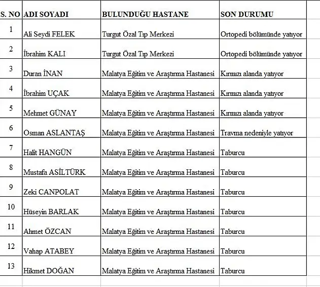 İşte enkazdan çıkarılan vatandaşların listesi ve durumları...
