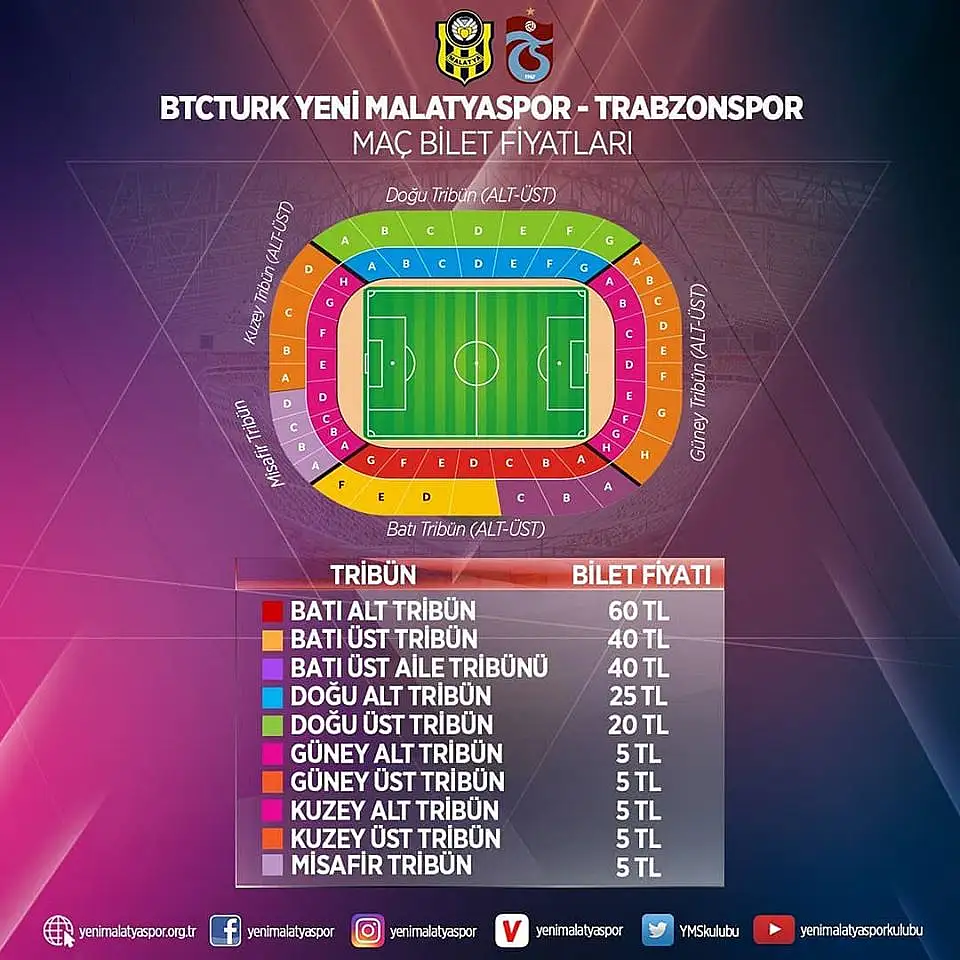 BtcTurk Yeni Malatyaspor-Trabzonspor karşılaşmasının biletleri satışa sunuldu. Bilet fiyatları şöyle: