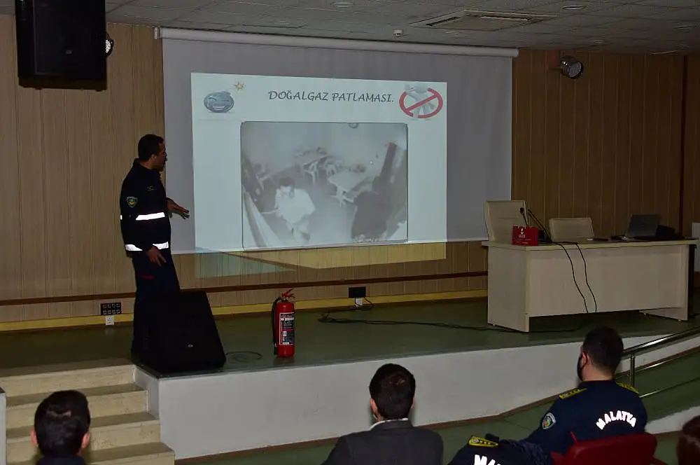 Malatya genelinde resmi kurumlarla birlikte okullarda, sitelerde, özel iş yerlerinde ve apartmanlarda afetlerle ilgili bilgilendirme çalışmalarına devam eden İtfaiye Daire Başkanlığı ekipleri, Aile ve Sosyal Politikalar İl Müdürlüğünde yangın, deprem ve enkazlar da yapılması gerekenlerle ilgili eğitim verdi.