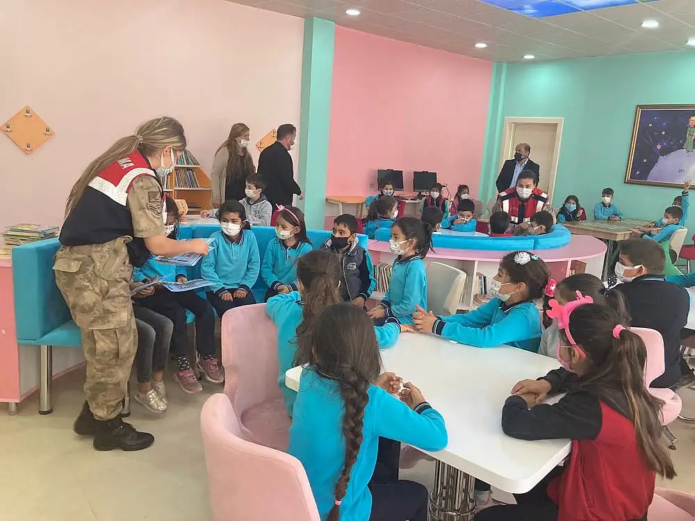 Bu arada, Jandarma ekipleri ayrıca Yarbay Songül Yakut İlkokulu’nda bulunan öğrencilere boyama kitabı ve jandarma dergisi dağıttı. Boyama kitabı ve jandarma dergisini alan miniklerin mutluluğu gözlerine yansırken, jandarma ablalarına teşekkür ettiler.