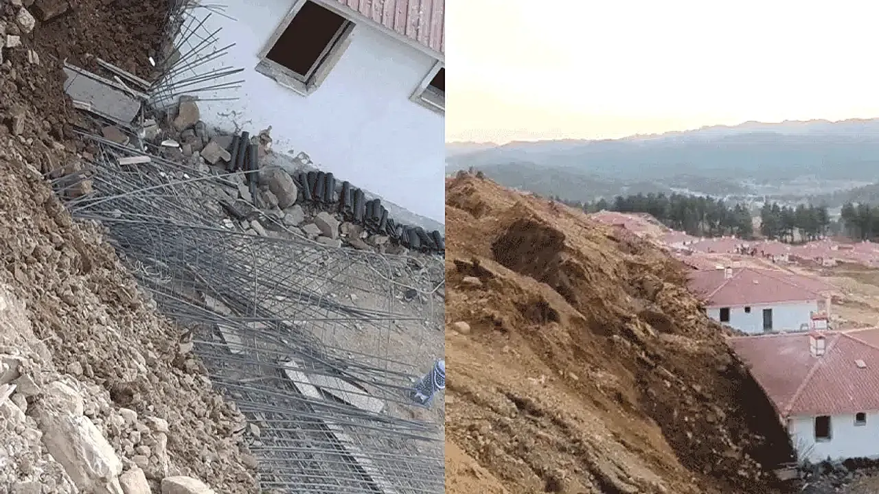 Toprak altında kalan yapıların, depremzedeler için Toplu Konut İdaresi Başkanlığı (TOKİ) tarafından yapılan köy evleri olduğu öğrenildi. Şahinkayası Mahallesi’nde yapımı süren evlerden bazıları henüz tamamlanmamış, bazılarının ise son düzenleme aşamasında olduğu belirtildi. Olay sırasında inşaat alanında hiçbir işçi ya da vatandaşın bulunmaması büyük bir faciayı önledi.