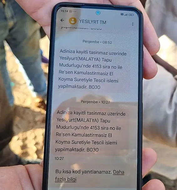 Malatya’nın Yeşilyurt ilçesine bağlı İkizce Mahallesi sakinleri, tapulu arazilerine kamulaştırma yapılmadan el konulduğu iddiasında bulunuyor. Kendilerine gelen mesajla hayatlarının şokunu yaşayan vatandaşlar, çalmadık kapı bırakmadı ama bir cevap alamadı.