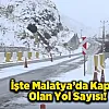 Hekimhan-Keban-Malatya güzergâhının 0-45 kilometreleri, Malatya-Elazığ yolu Pütürge mevkii 5-35 kilometreleri arası, Hekimhan-Kurşunlu yolu 0-41 kilometreleri arası ile Sivas-Malatya il sınırı Darende-Hekimhan yolu 0-33 kilometreleri arası yoğun kar yağışı ve tipi nedeniyle trafiğe kapatılmıştır.