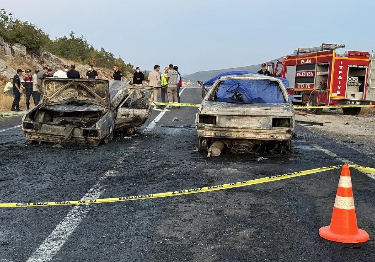 Karabük'ün Eflani ilçesinde iki otomobilin kafa kafaya çarpışması sonucu meydana gelen trafik kazasında aynı aileden üç kişi yanarak hayatını kaybetti. Ailenin üniversite kaydı için Çorum'dan yola çıktığı öğrenildi.