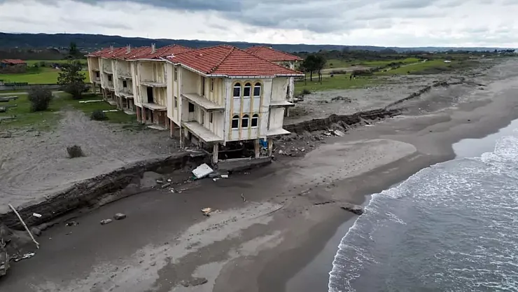 Sakarya'nın Karasu ilçesinde uzun süredir devam eden kıyı erozyonu, sahil şeridindeki yapıları yutmaya başladı. Dalgaların kıyıyı aşındırmasıyla eski bir tatil köyünde bulunan villalar ve havuzlar çökerken, bölgedeki tehlikeyi durdurmak için devletin ilgili birimleri düğmeye bastı.